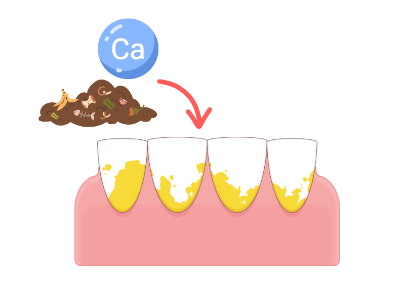 実は、歯石は最初から硬いわけではありません。まず食後の汚れに細菌が繁殖し、ネバネバした歯垢(プラーク)が作られます。この段階なら歯磨きで落とせますが、放置すると唾液中のカルシウムやミネラルと結びつき、わずか2〜3日で硬い歯石へと変化します。一度石になると歯ブラシでは落とせないため、歯科医院での専門的なケアが必要になります。