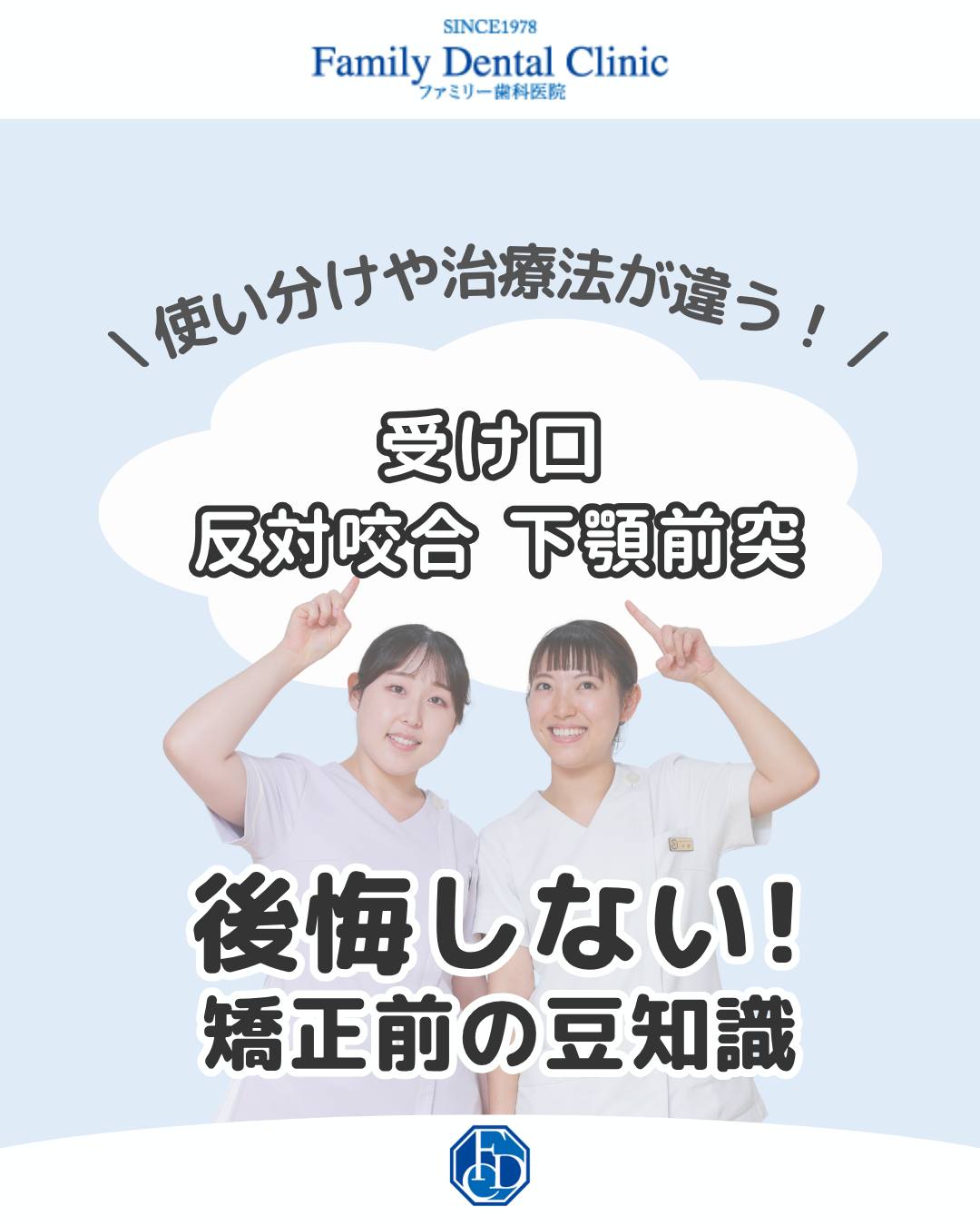 しゃくれにも【受け口・下顎前突・反対咬合】と種類がある為、治療方法も異なります。