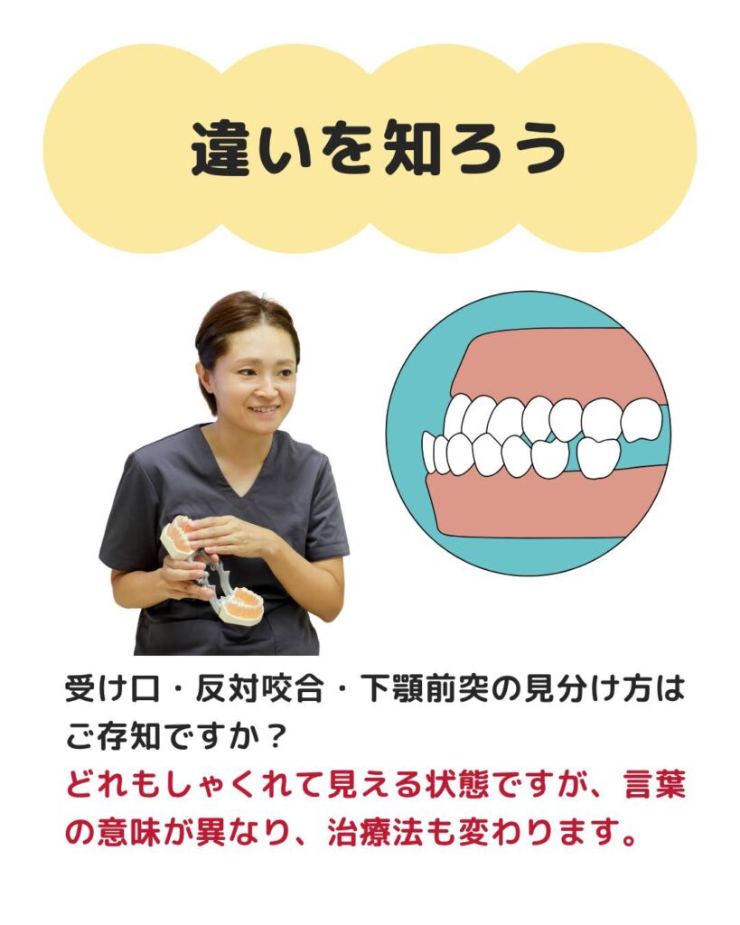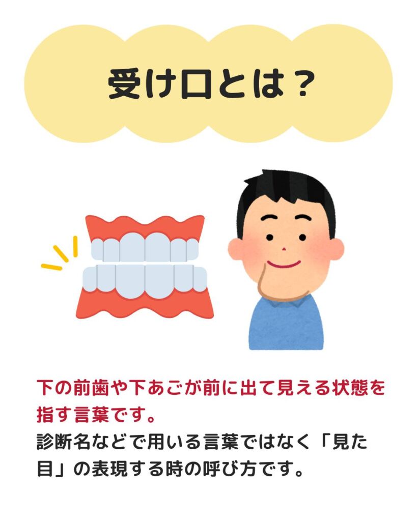 ①受け口(下あごや下の前歯が前に出ているように見える状態)