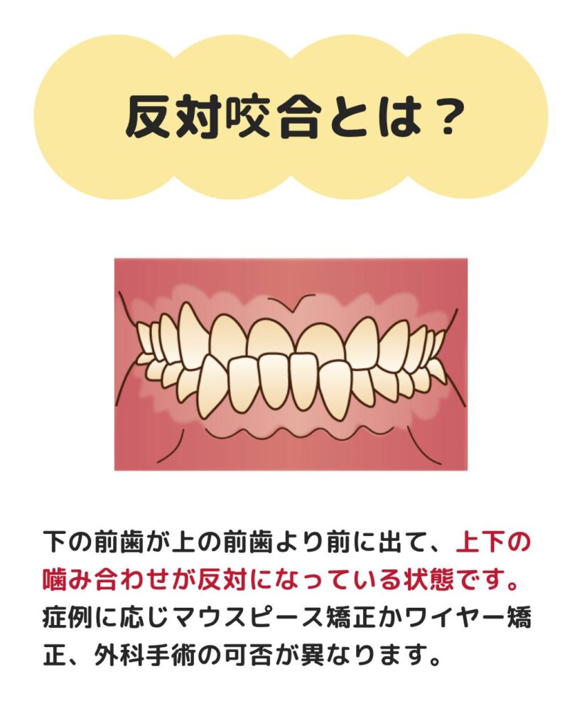 ③反対咬合(上下の噛み合わせが反対になっている状態)