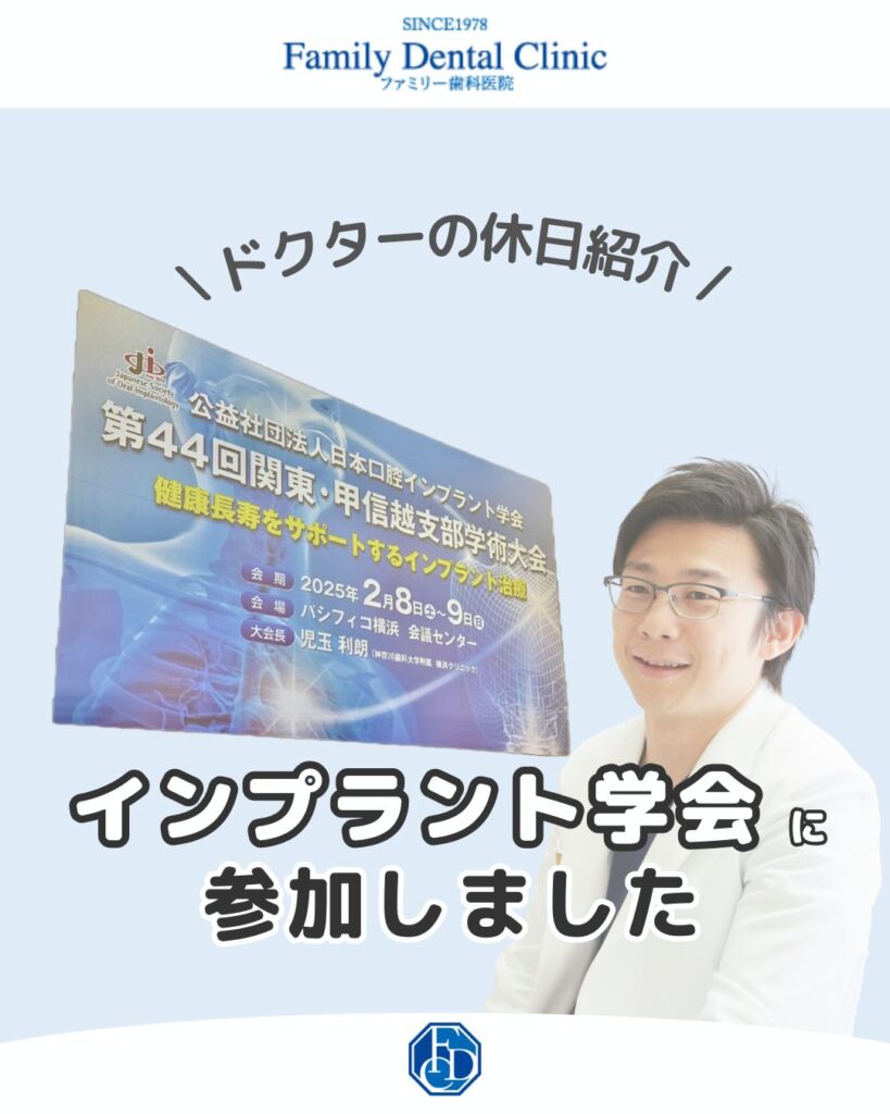 ファミリー歯科医院 勤務医の小林です。 先日埼玉で開催された「Neodent Basic Plus Course」というインプラント研修に参加してまいりました。…